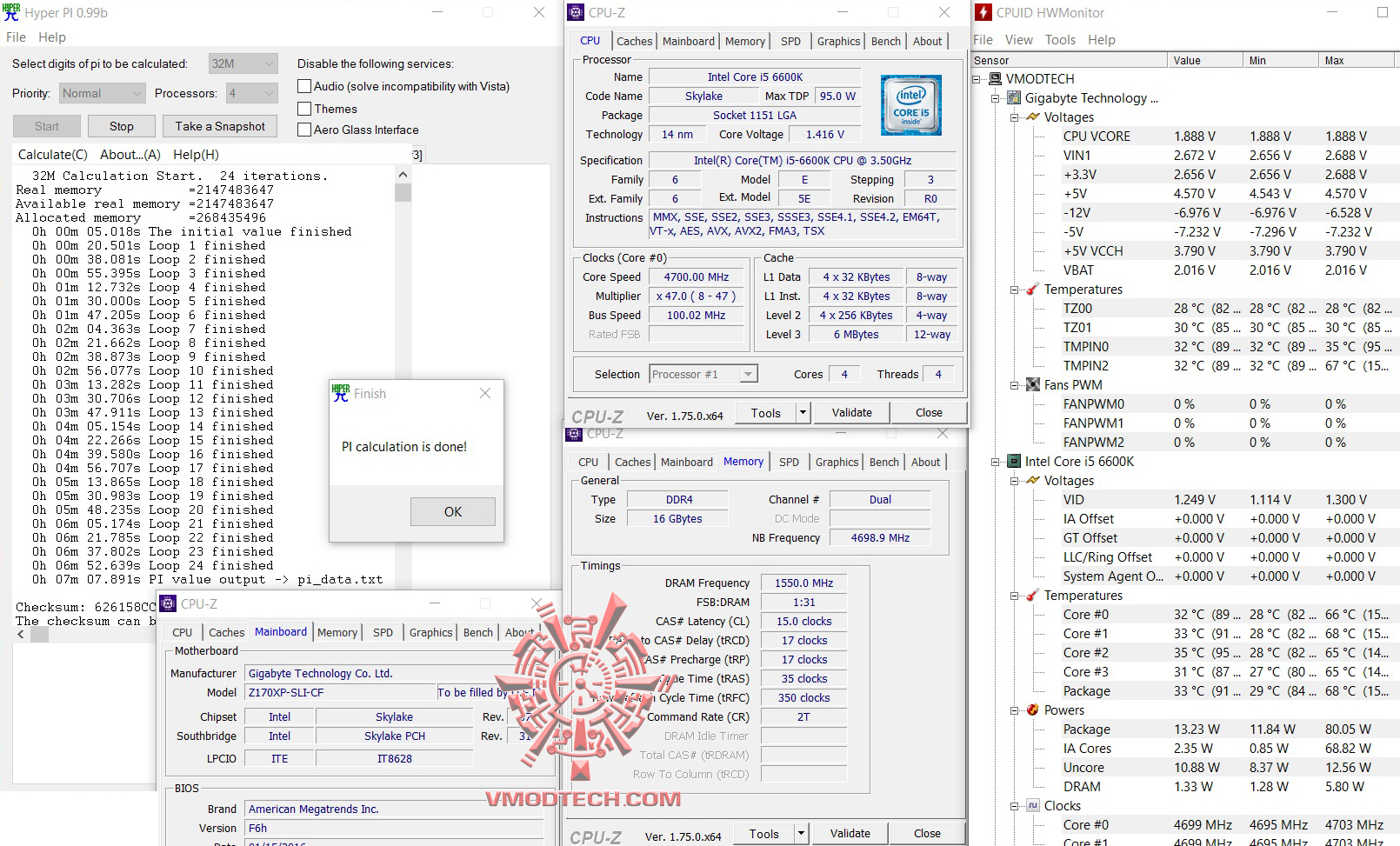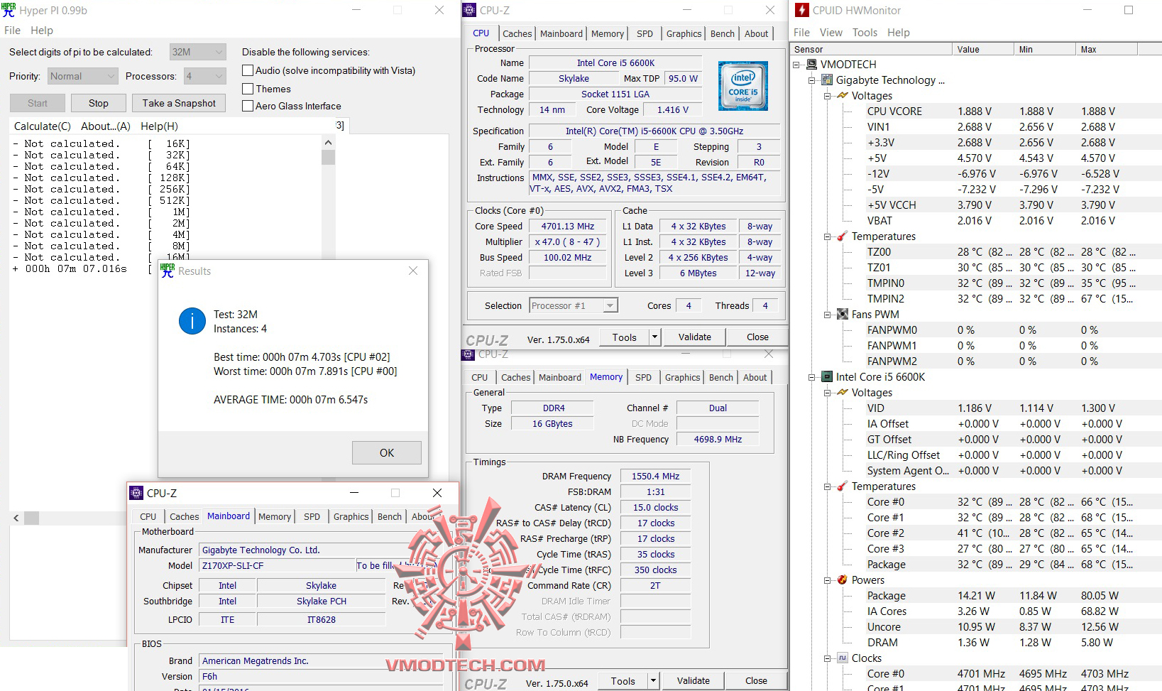 GIGABYTE GA-Z170XP-SLI REVIEW : SuperPI 1M 1Thread, 32M 1Thread & 32M 8Threads (4/9)