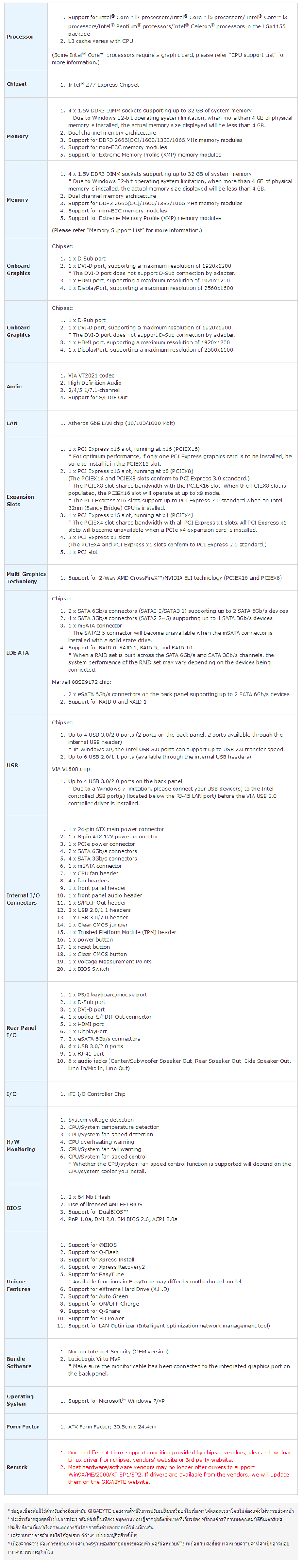 ...สเป็คจัดกันมาเต็มๆยาวเหยียดจริงๆครับ สำหรับ GIGABYTE GA-Z77X-UD3H โดดเด่นกันสุดๆด้วยราคาเพียง 5,200 กว่าบาท คุ้มค่าสุดยอดจริงๆครับ