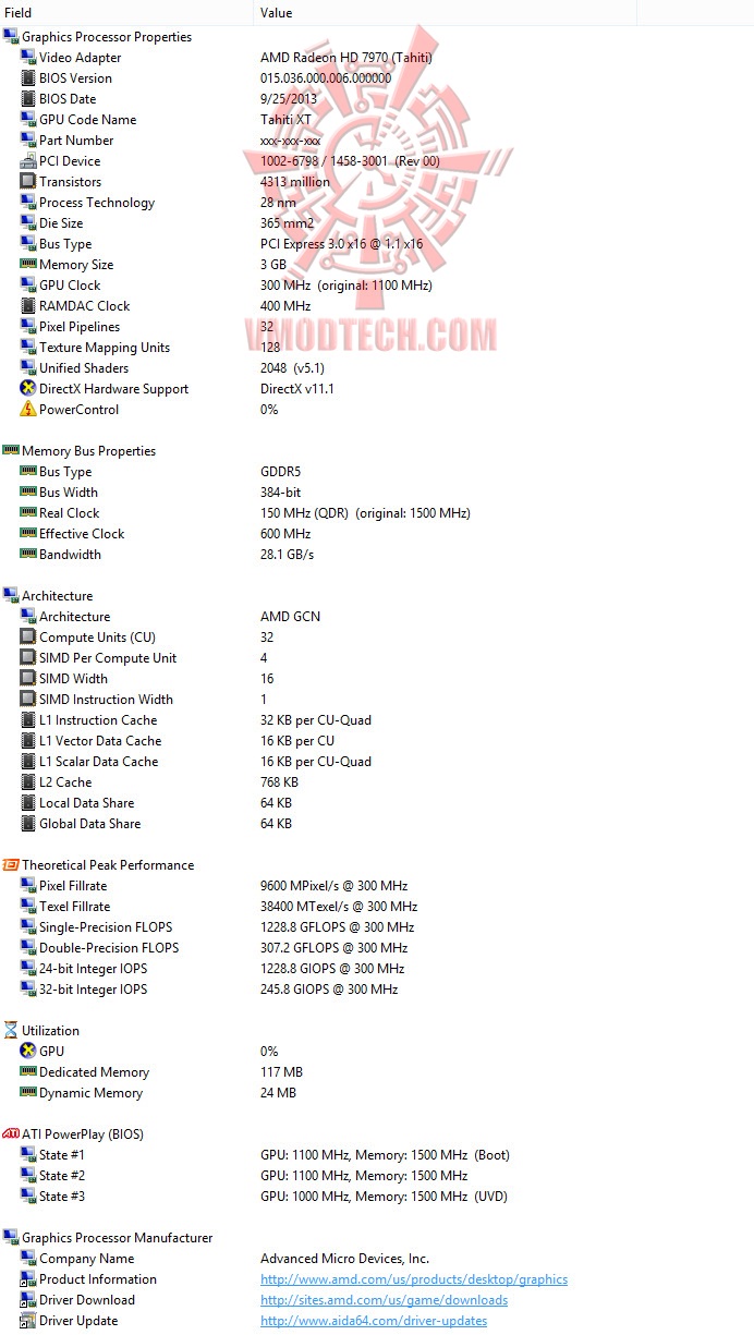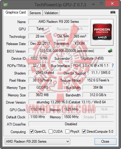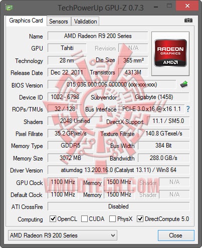 GIGABYTE RADEON R9 280X OC WINDFORCE 3X from GPUZ