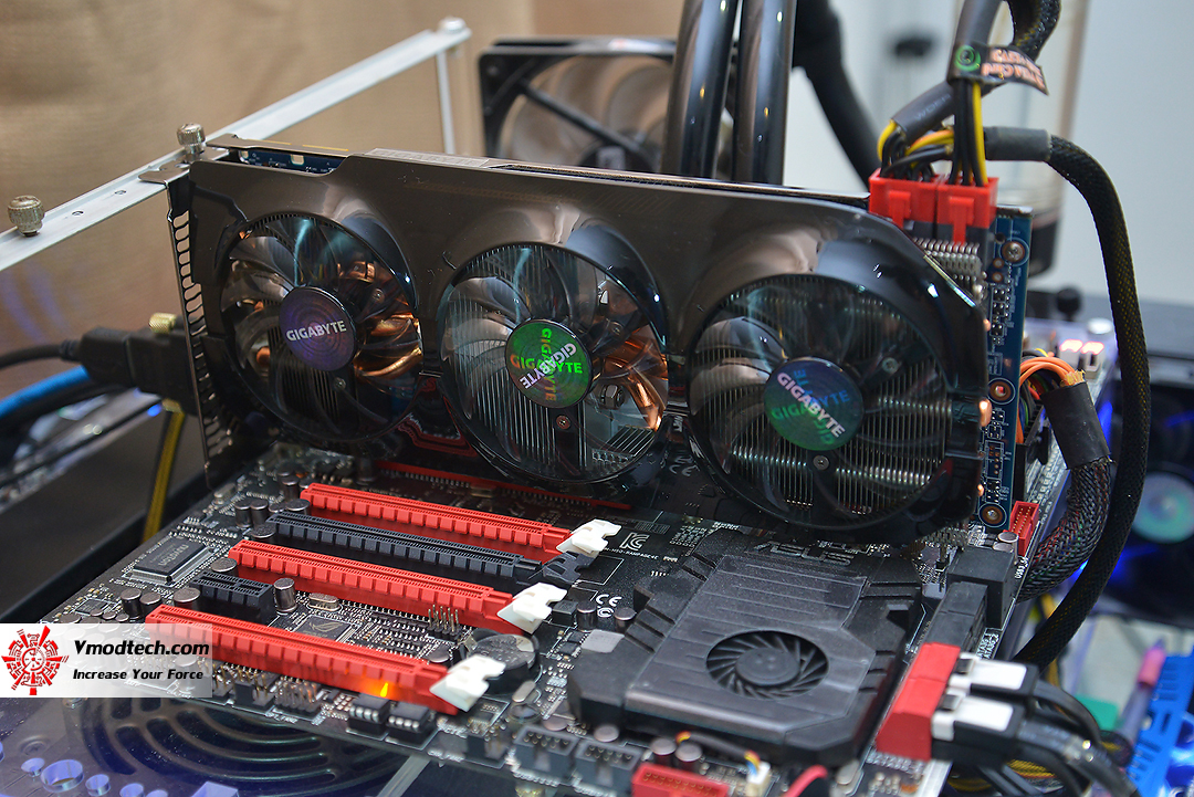และเมื่อทำการโอเวอร์คล๊อกพร้อมปรับรอบพัดลมไปสุด ปรับไฟไปสุดๆ ความร้อนหลังจากทำการเพิ่มไฟและ overclock นั้นก็ลดลงจากเดิมเหลือแค่ 64 องศาเซลเซียสเท่านั้น เสียงพัดลมเบามาก