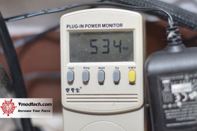 เมื่อทำการโอเวอร์คล๊อกไปแล้ว อัตราการเรียกใช้ไฟจากเต้ารับนั้นก็เพิ่มขึ้นเป็น 534 วัตต์ครับ