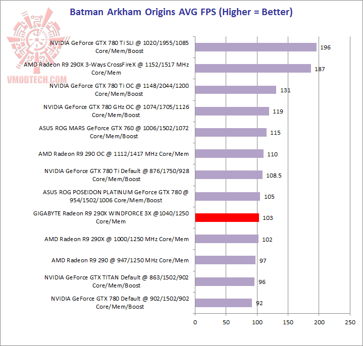 GIGABYTE Radeon R9 290X WINDFORCE 3X Review : BATMAN ARKHAM ORIGINS Benchmark (15/18)