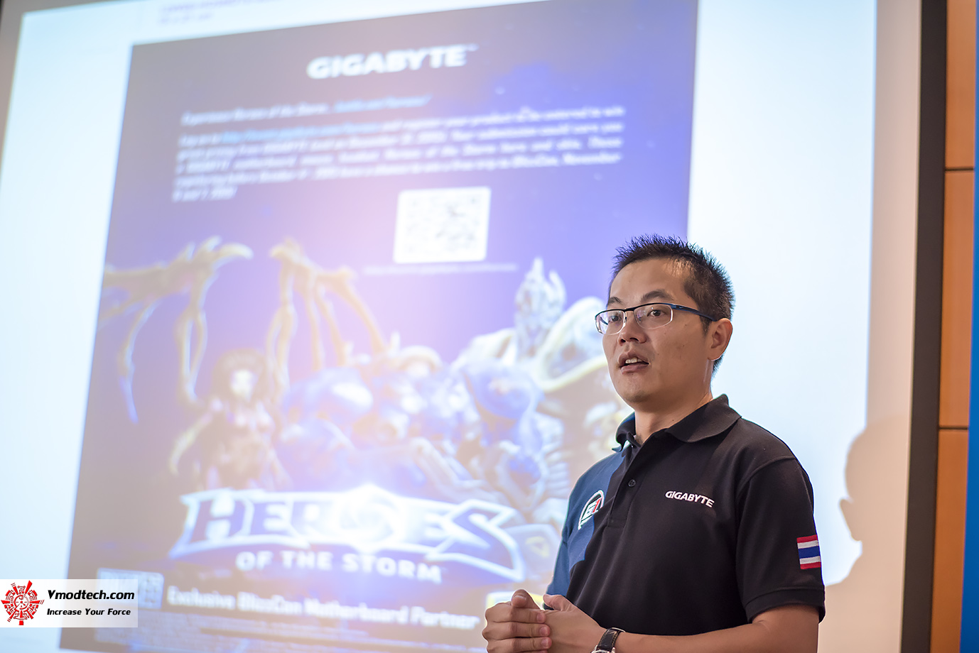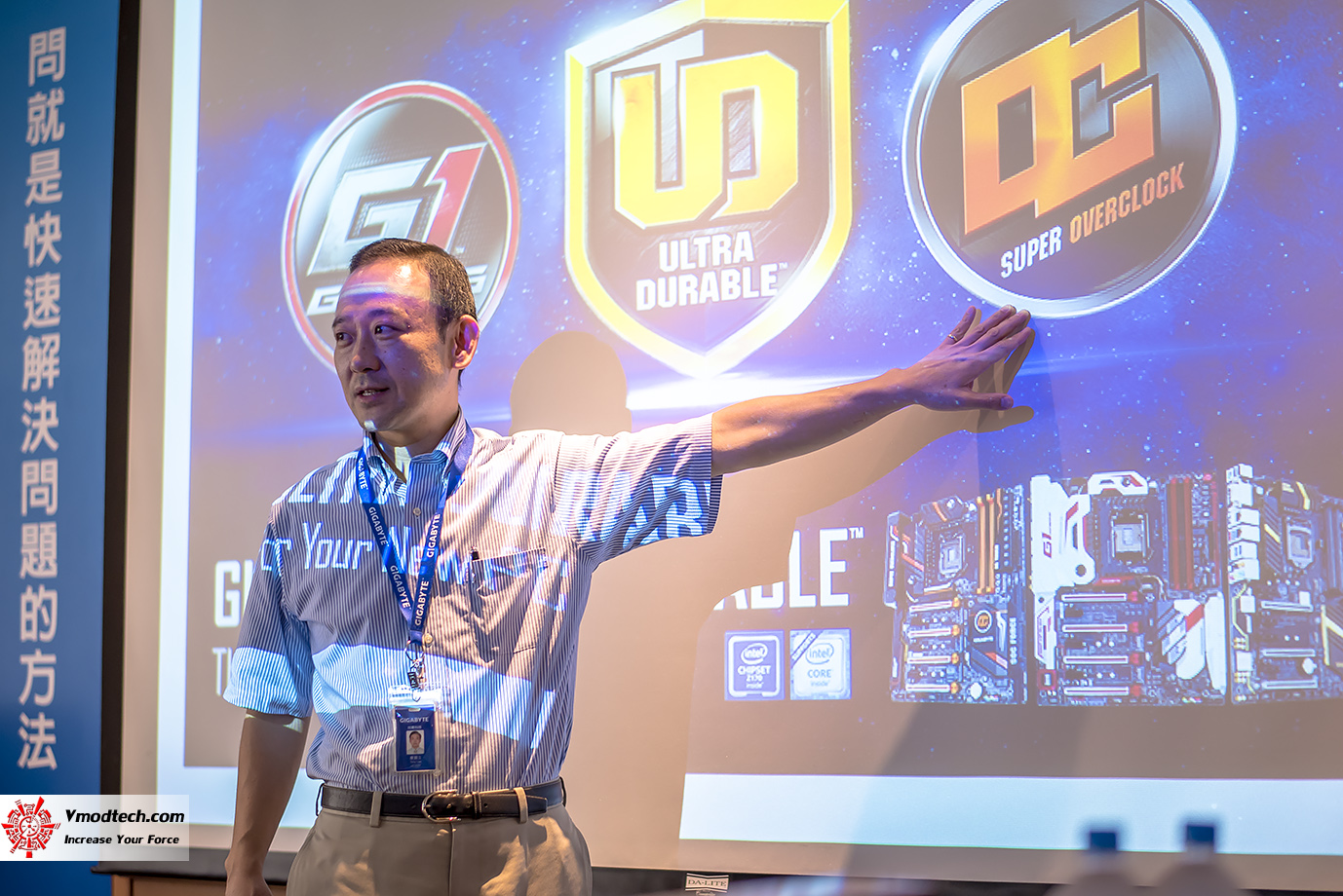 ...จบในส่วนโรงงานการผลิต ก็ตามด้วยการบรรยายถึงคุณสมบัติต่างๆของมาเธอร์บอร์ด GIGABYTE รุ่นใหม่ ที่ใช้ชิปเซต Z170 กันครับ โดยผู้บริหารที่ให้เกียรติมาบรรยายครั้งนี้ก็คือ Mr.Tony Liao ตำแหน่ง Senior AVP, Product Marketing Dept
