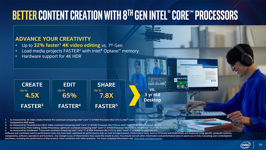 ประสิทธิภาพในงานออกแบบในงานทั่วไปแรงขึ้นมากถึง 32เปอร์เซ็นในการตัดต่อวีดีโอความละเอียด 4K เมื่อเทียบกับรุ่นก่อนหน้านี้ เพื่อผู้ใช้งานทั่วไปที่เน้นซีพียูประสิทธิภาพสูง