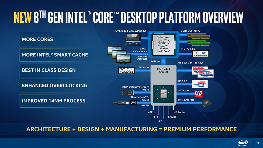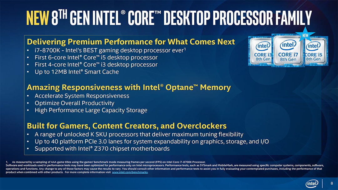 Intel 8th Gen "Coffee Lake" ออกแบบมาสำหรับคอเกมส์มิ่ง นักออกแบบผู้ใช้งานด้านต่างๆ รวมทั้งนักโอเวอร์คล๊อกครับ