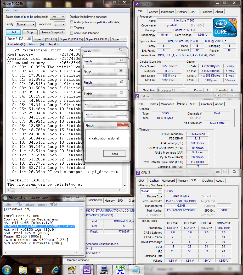 ช๊อตแรกเลยกับ HyperPi 0.98b 32M 4 Cores 8 Threads เบนมาร์คฯ ตัวนี้ผมทำ SS ตอนเทสค่าตามสเปคหายไป คงเหลือแต่ SS เฉพาะตอนวิ่งแบบโอเว่อร์สเปคเท่านั้น ก็รันผ่านมาได้ตามมาตรฐานชายไทย at วีม๊อดเทค กับความเร็วแบบโอเว่อร์สเปคที่บัสแรม 2262Mhz. ครับ :)