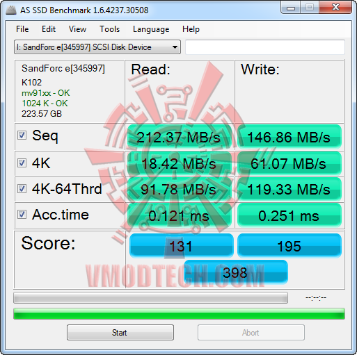 AS SSD นี่เป็นอีก Benchmark ที่สามารถวัดประสิทธิภาพของ SSD ได้ดีนอกเหนือจาก Crystal Disk Mark ครับ สำหรับคะแนนตรงนี้ก็ถือว่าไม่มากไม่น้อย
