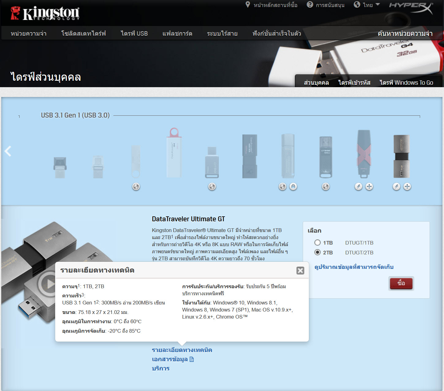 สวัสดีครับ วันนี้เรามีที่สุดของ USB Flash Drive รุ่นล่าสุดจากแบรนด์ดัง Kingston ซึ่งเป็นยักษ์ใหญ่ในบิซิเนส Data storage ที่รู้จักกันเป็นอย่างดี โดยวันนี้เราได้นำเอา Kingston Datatraveler Ultimate GT 2.0TB USB 3.1 Gen 1มารีวิวให้ได้ชมประสิทธิภาพกัน Kingston DataTraveler® Ultimate GT มีวางจำหน่ายที่ขนาด 1TB และ 2TB1 เพื่อสำรองไฟล์งานขนาดใหญ่ ทำให้สะดวกอย่างยิ่งสำหรับการถ่ายวิดีโอ 4K หรือ 8K แบบ RAW หรือในการจัดเก็บไฟล์ภาพยนตร์ขนาดใหญ่ ภาพความละเอียดสูง ไฟล์เพลง และไฟล์อื่น ๆ รุ่น 2TB สามารถบันทึกวิดีโอ 4K ความยาวถึง 70 ชั่วโมง