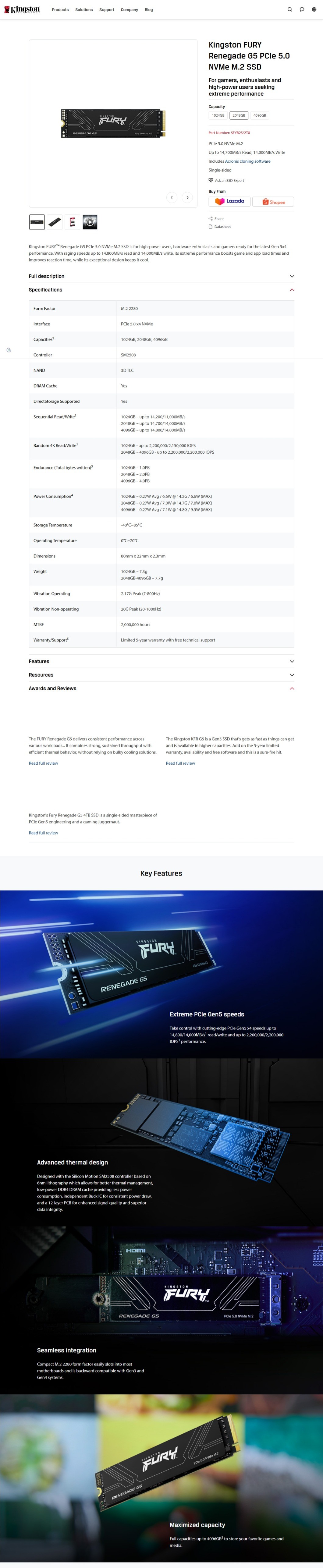 Kingston FURY Renegade G5 PCIe 5.0 NVMe M.2 SSD 2TB Review : Introduction (1/5)