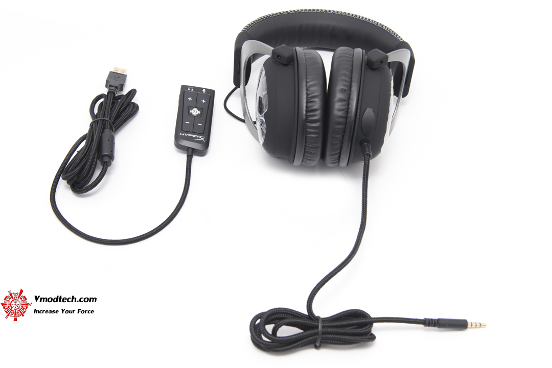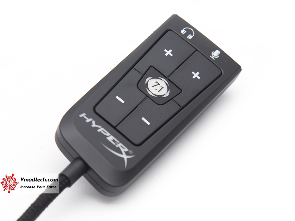 ด้านหน้าบริเวณจุดคอนโทรลจะเห็นมีปุ่มเพิ่ม/ลดเสียงของหูฟังและไมค์ ตรงกลางนั้นจะเป็นสวิทซ์เปิด/ปิดระบบจำลองเสียงรอบทิศทางแบบ 7.1 ช่องเสียง