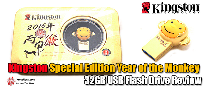 สวัสดีครับทุกๆท่านที่ชมเว็บไซต์ Vmodtech.com วันนี้เรามาชมรีวิวแฟลสไดร์ยี่ห้อ Kingston มากันในชื่อรุ่น Kingston Special Edition Year of the Monkey 32GB USB Flash Drive ที่ออกแบบมาให้เข้ากับชุดปีนักษัตรของจีนครับ โดยดีไซน์การออกแบบเป็นรูปของลิงตรงกับปีลิงในปีนี้นั่นเองครับ ตัวแฟลสไดร์นั้นเน้นสีทองสวยงามรวมไปถึงรูปน่ารักๆของลิงซึ่งเป็นจุดเด่นของแฟลสไดร์ในรุ่นนี้ ซึ่งสเปกการทำงานก็ไม่ธรรมดาครับเป็นแฟลสไดร์ที่มีความจุ 32GB รองรับการทำงาน USB 3.1/3.0 ส่วนประสิทธิภาพความแรงที่กำหนดเอาไว้นั้นก็ไม่ธรรมดาครับ การอ่านอยู่ที่ 100MB/s และเขียน 10-15MB/s กันเลยทีเดียว ส่วนประสิทธิภาพการทำงานเป็นเช่นไรนั้นเดี๋ยวเราทราบกันครับ แต่ก่อนอื่นเราไปชมรายละเอียดจากทางเว็บไซต์กันก่อนที่จะไปชมบททดสอบครับ.