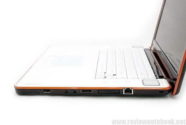 พอร์ตเชื่อมต่อด้านขวามือ มี eSATA และ USB บวกกับ พอร์ต RJ45 การ์ดรีดเดอร์ และพอร์ต Expresscard