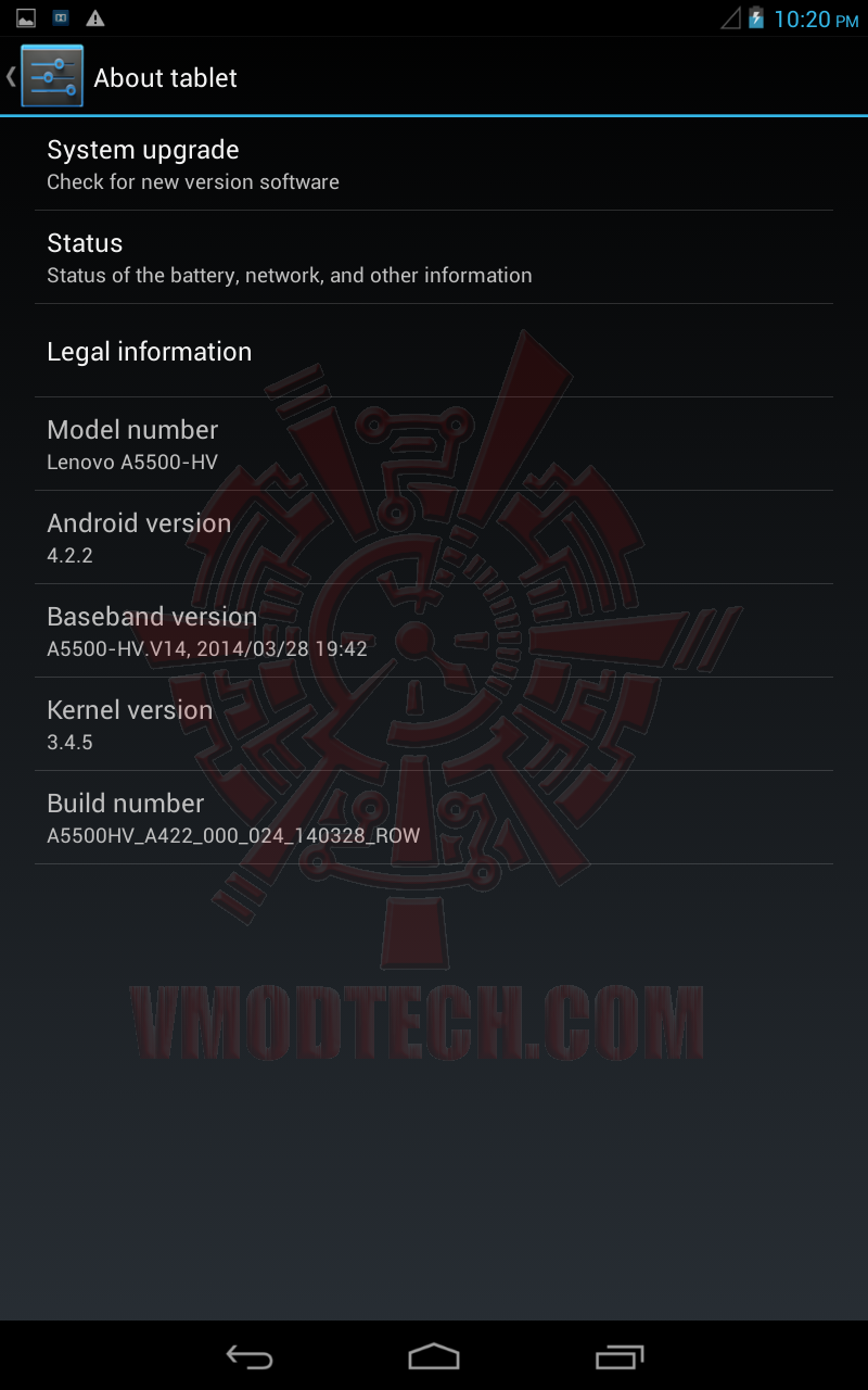 • Manufacturer and model LENOVO TAB A8  (LENOVO A5500-HV)