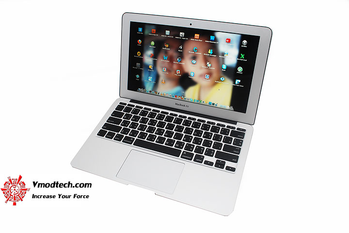 เมื่อกางออกมาก็ไม่ต่างอะไรกับ Laptop หรือ Notebook ที่เราชินตาเลยครับ ด้วย Layout ของ Keyboard ก็ไม่ได้แตกต่างจนทำให้เรายุ่งยากในการปรับตัวเท่าไหร่นัก นี่ไม่รวมว่าเราต้องทำความรู้จักกับปุ่มต่างๆที่มีหน้าที่ต่างกันไปบน Mac OSX ครับ