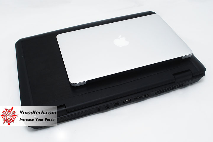 ก่อนจะจบหน้า ลองเอา MacBook Air ซึ่งน่าจะเป็นตัวที่เล็กที่สุดเท่าที่ผมเคยใช้งาน เอามาวางเทียบกับ Notebook ที่ใหญ่ที่สุดเท่าที่เคยเห็นครับ MSI GT 780 R ตัวแรงสุดๆ จะเห็นว่า MacBook Air เหลือตัวนิดเดียวเองครับ