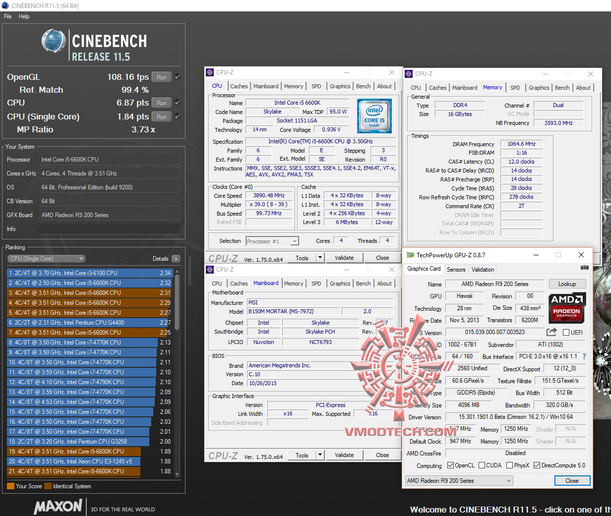 MSI B150M MORTAR REVIEW : Cinebench 10 , 15 (6/8)