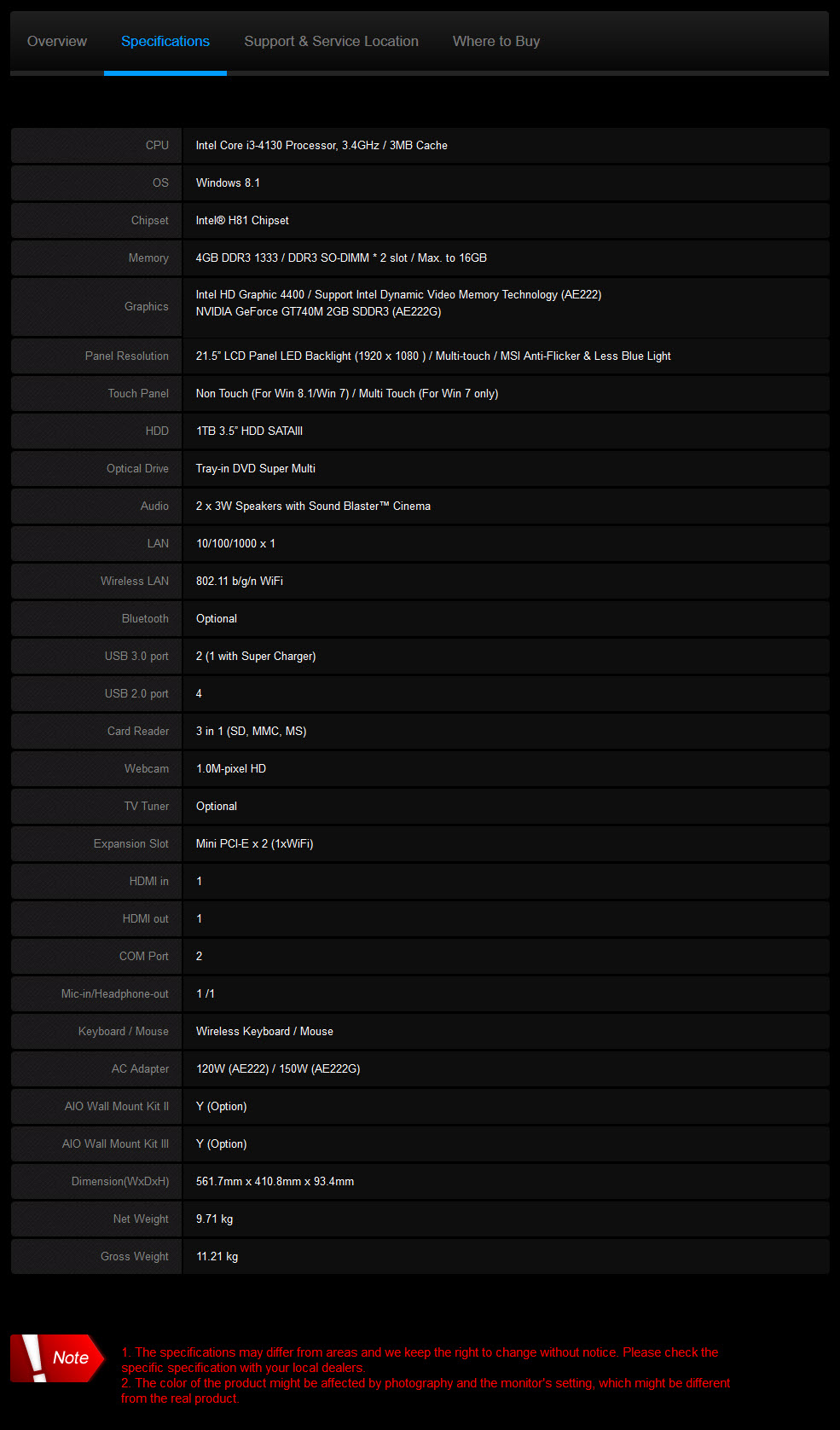 MSI Entertainment Series AE222 ALL-IN-ONE PC Review : Introduction & Specification (1/6)