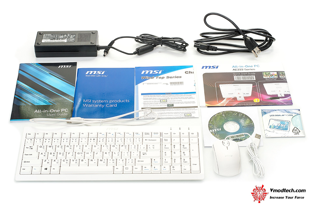 ของภายในกล่องก็เพียบครับ มีคู่มือต่างๆ, แผ่นไดร์เวอร์, สายไฟ adapter และ มี เมาท์กับคีย์บอร์ดมาให้ด้วย
