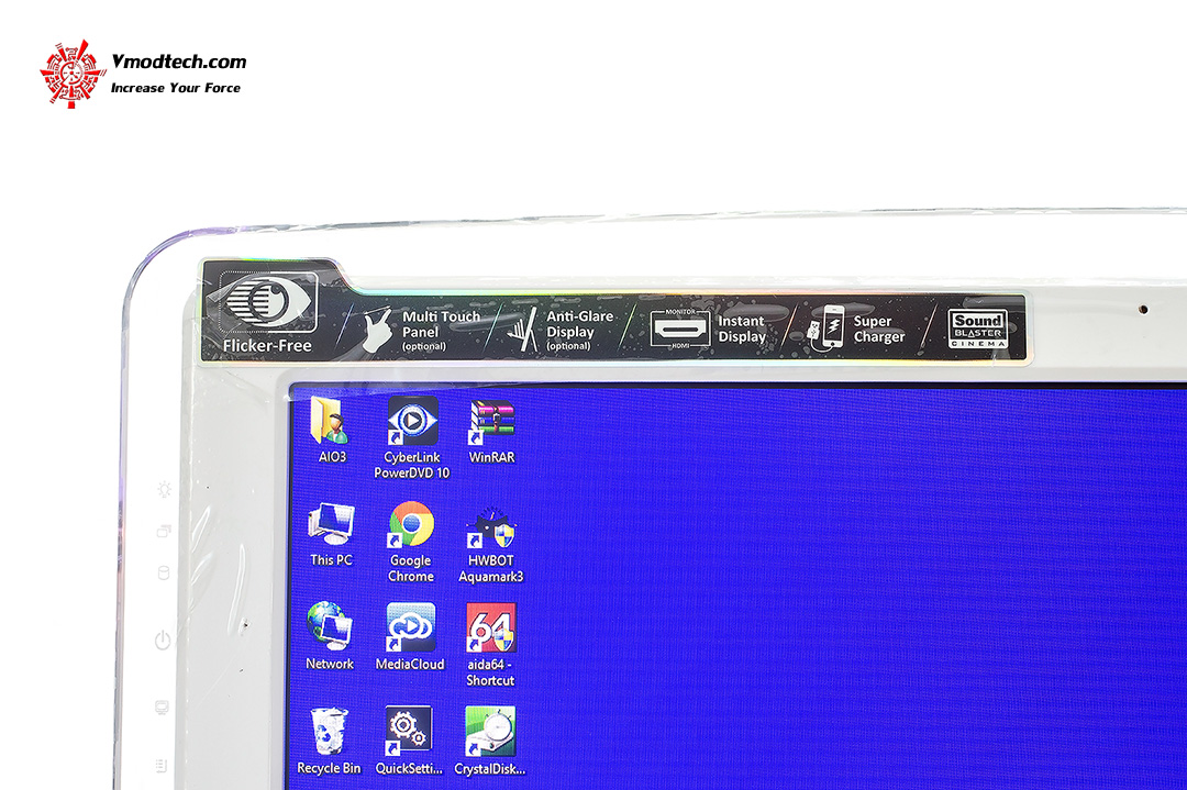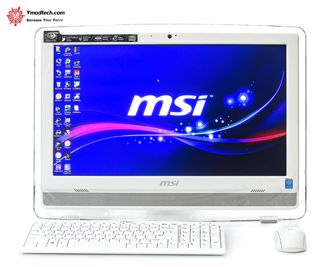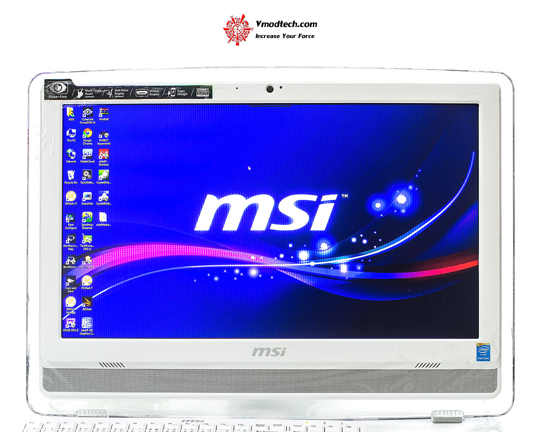 มุมซ้ายบนก็มี สติ๊กเกอร์แสดงฟังก์ชั่นเด่นของ MSI AE222 ALL-IN-ONE PC