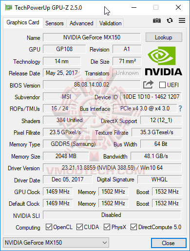 กราฟฟิกการ์ดนั้นติดตั้ง NVIDIA GeForce MX150 มาให้ มันมีแรมมาให้ตัว 2 กิ๊กกะไบท์ครับ
