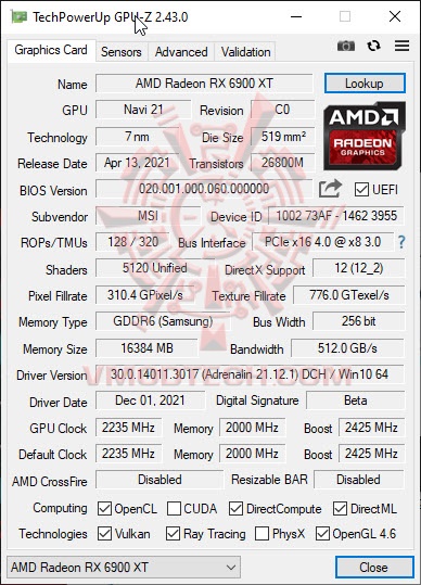 MSI Radeon™ RX 6900 XT GAMING Z TRIO 16G from GPUZ