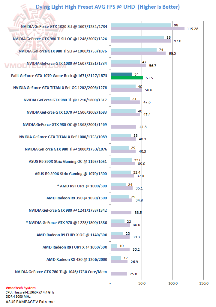 PALIT GeForce GTX 1070 GameRock Premium Edition Review : 4K - DYING LIGHT Benchmark (10/17)