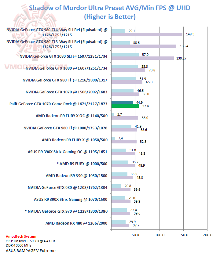 PALIT GeForce GTX 1070 GameRock Premium Edition Review : 4K - Shadow of Mordor (12/17)
