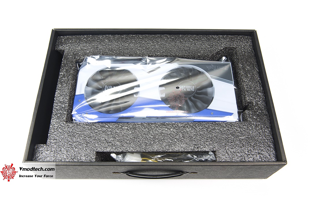 ภายในกล่องนั้นจะมีการกันกระแทกมาไว้ให้ค่อนข้างดีครับ ไม่น่ากลัวต่อการเสียหายแต่อย่างใด ของแถมที่มากับกล่องก็จะมีคู่มือการติดตั้ง แผ่น Driver หนึ่งแผ่น และหัวแปลงไฟจากหกพิน PCIe เป็นแปดพิน PCIe หนึ่งเส้น