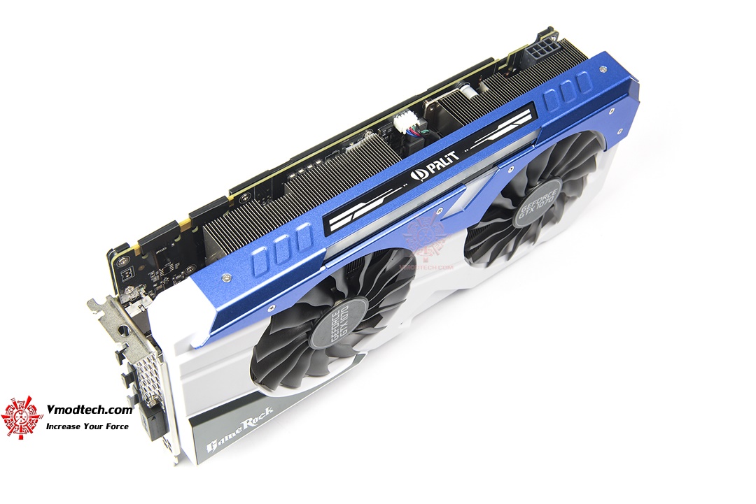 แบคเพลทนั้นเป็นโลหะเบาๆที่มีความแข็งแรงใช้ได้เลย Palit GeForce GTX 1070 GameRock Premium Edition และมีโลโก้ GameRock สวยงามอยู่ด้วย