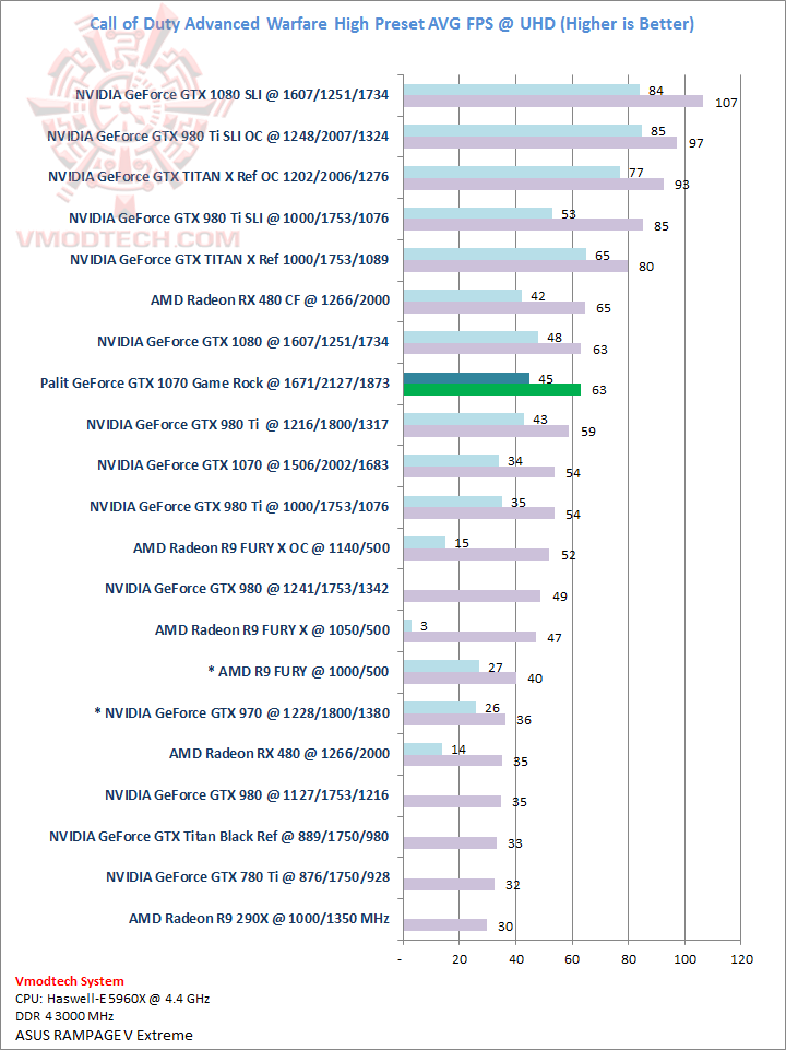 PALIT GeForce GTX 1070 GameRock Premium Edition Review : 4K - Call of Duty Advanced Warfare Benchmark (8/17)