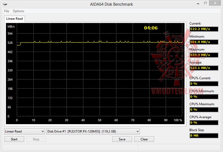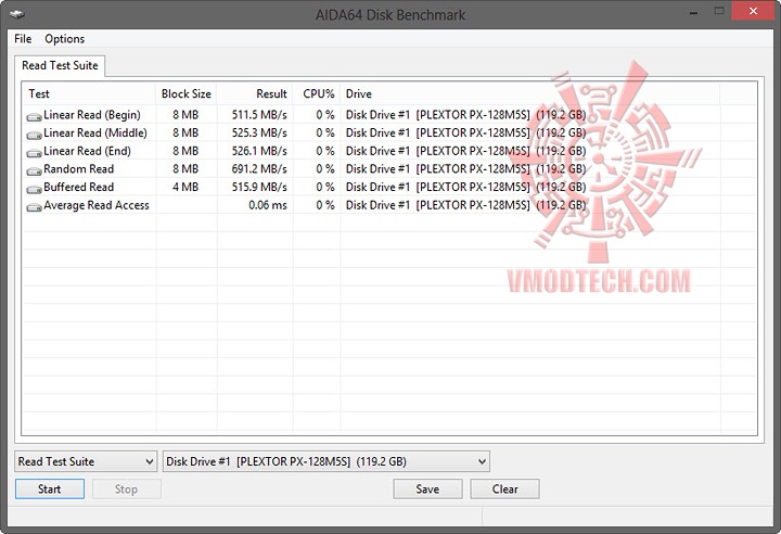 AIDA Read test suites นี่ก็แสดงให้เห็นความแรงที่เกิน 500 MB/s