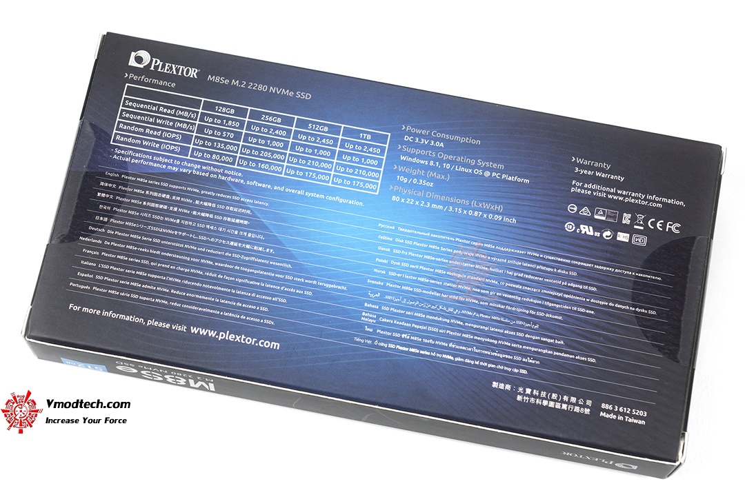 แพกเกจ Plextor PX-512M8SeGN 512GB นั้นมาแบบง่ายๆครับไม่จำเป็นต้องไปทุ่มกับวัสดุอะไรที่ไม่จำเป็น โทนสีของตัวกล่องนั้นจะเป็นสีฟ้าเล่นเฉดจางๆที่บริเวณกลางๆ ด้านหลังมีอธิบายรายละเอียดไว้สมบูรณ์