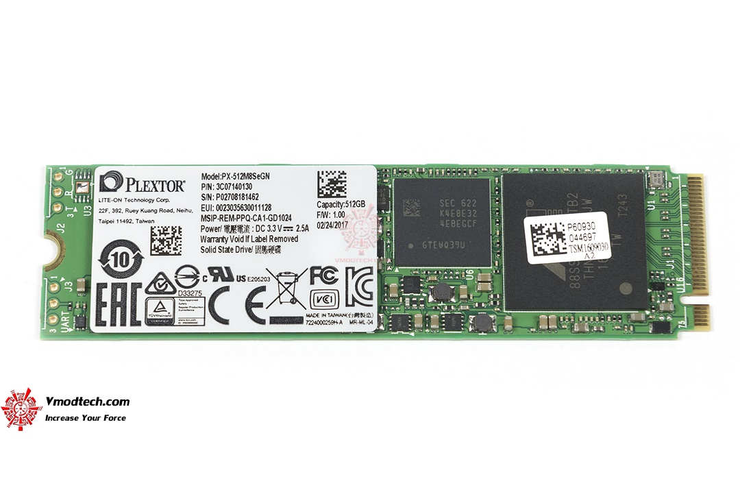 หน้าตาเต็มๆของ Plextor PX-512M8SeGN 512GB ที่มีอินเตอร์เฟสแบบ PCIe แบบ NVMe 1.2