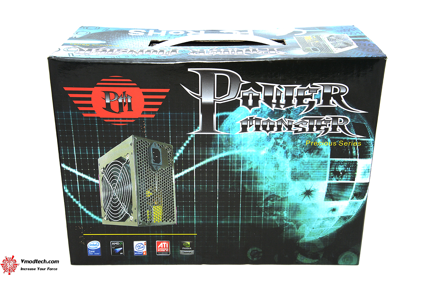กล่องโทนสีดำครับ บอกรายละเอียดชื่อรุ่น Power Monster 550W Power Supply