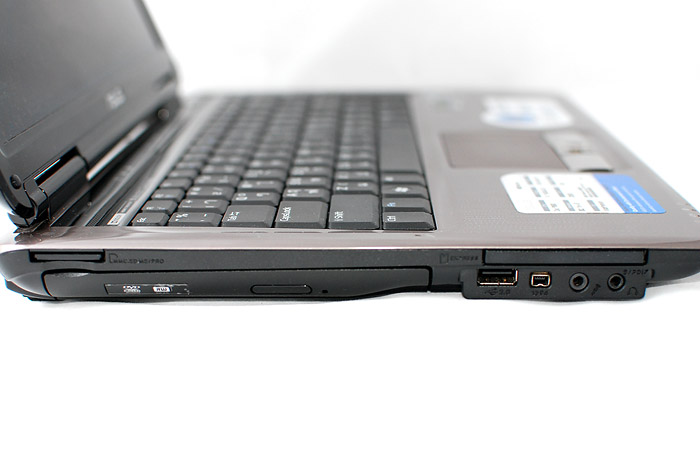 ซ้ายมือมีไดร์ฟ DVD-RW การ์ดรีดเดอร์ 8 in 1 สลอตสำหรับ Express Card, Mini Firewire USB อีกหนึ่งพอร์ต และ Audio Port ทั้งหลายครับ
