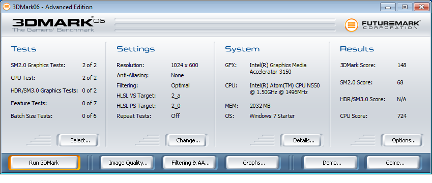 ทดสอบเท่าที่คะแนนจะออกนะครับ เพราะติดปัญหาที่ GMA3150 นั้นไม่รองรับอะไรหลายๆอย่างใน benchmark ตัวนี้