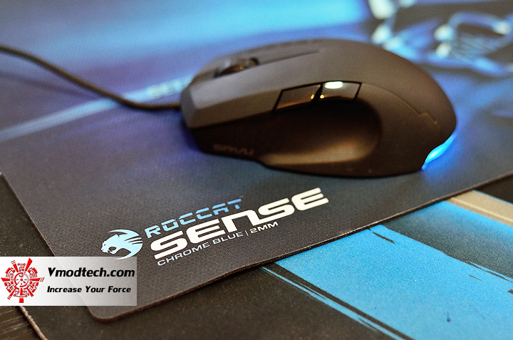 ขณะทำการทดลองใช้ครับ วันนี้ผมทำการลองเล่น ROCCAT SENSE Chrome Blue 2MM กับเมาส์ของ ROCCAT รุ่น SAVU ครับ สำหรับ ROCCAT SENSE Chrome Blue 2MM นั้นสัมผัสแรกคือเป็นแผ่นรองเมาส์ที่ลื่นมาก แต่บนความลื่นนั้นไม่ได้ทำให้การควบคุมเคอร์เซอร์ลำบากเลย การควบคุมยังสมบูรณ์แบบ ด้วยความหนา 2 มิลลิเมตรนั้นดูเหมือนจะบางไปซักนิดสำหรับบางคนแต่ว่ากับบางคนก็อาจจะชอบก็ได้ครับ ขนาดนั้นสำหรับผมคงต้องบอกว่าเล็กไปนิดนึงเพราะโดยส่วนตัวแล้วใช้งาน ROCCAT Taito แบบ Kingsize อยู่ครับ แต่ก็ไม่ถือว่าเป็นปัญหาครับ สรุปง่ายๆว่า ROCCAT SENSE Chrome Blue 2MM นั้นเป็นเมาส์แพดแบบ Speed ที่ออกแบบมาด้วยสีสรรที่สวยงามโทนน้ำเงิน/ดำ กราฟฟิกบนตัวเมาส์แพดก็เป็นเอกลักษณ์ของ ROCCAT เองที่คุ้นตา สำหรับผมแล้วก็เป็น Mousepad อีกตัวเลือกนึงในตลาดที่น่าเป็นเจ้าของครับ เดี๋ยวนี้คงหาซื้อไม่ยากแล้วนะ เห็นที่ระยองยังมีขายเลยกับสนนราคาประมาณแปดถึงเก้าร้อยไม่เกินนี้ ลองไปเดินชมกันก่อนเลยครับว่าชอบหรือเปล่า ถ้าชอบก็จัดไปได้เลย