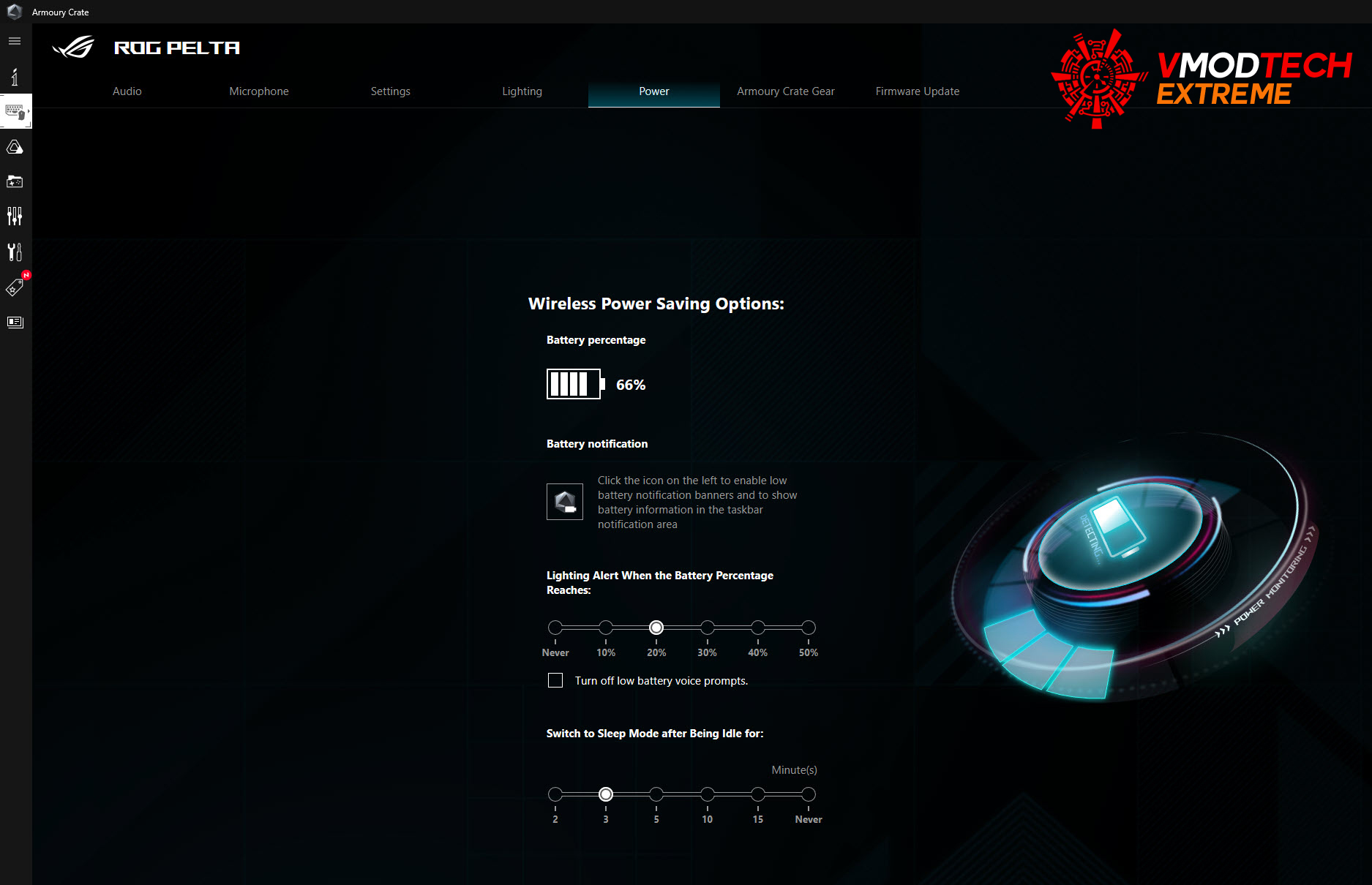 แสดงผลของแบตตอรี่ของตัว ROG Pelta Gaming headsets ครับว่าเหลืออยู่กี่เปอร์เซ็นและยังปรับแต่งได้ตามความต้องการ