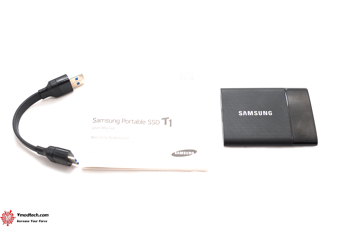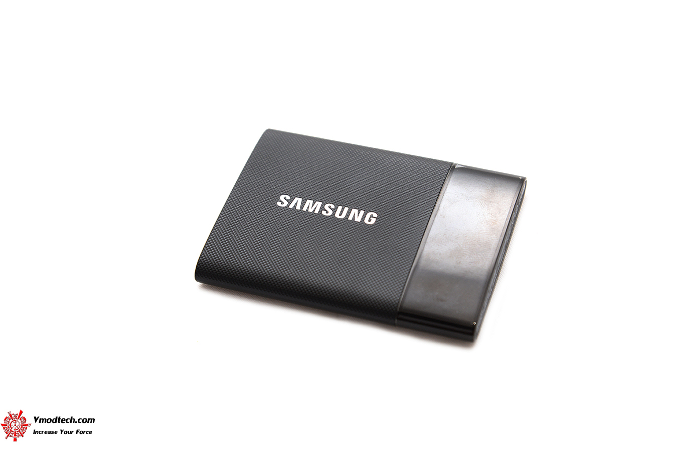 ตัว Samsung Portable SSD T1 250 GB นั้นสีดำสนิทมีโลโก้ยี่ห้อ Samsung อยู่ตรงกลาง ขนาดนั้นประมาณนามบัตรครับพกพาง่ายด้วยขนาดเพียง 9.6 x 71 x 53 มม.