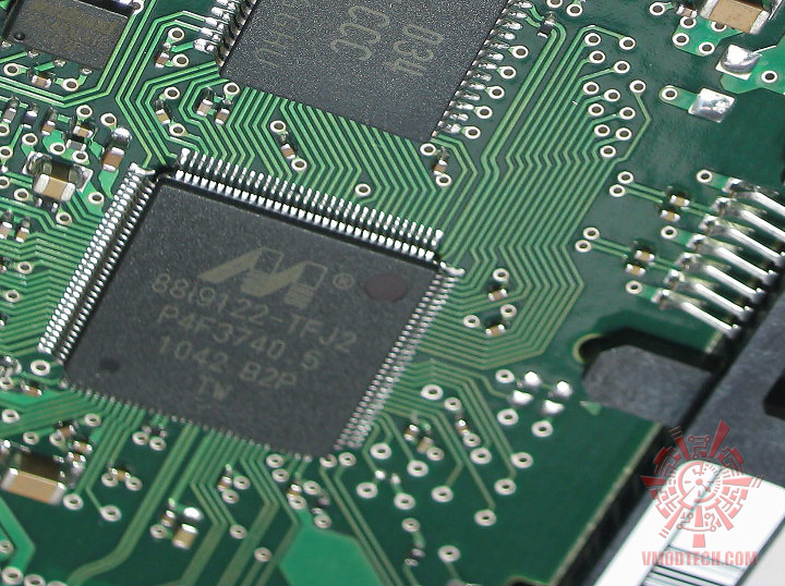 ในส่วนของเม็ดแรมที่แปะบนแผงควบคุมเป็น Samsung K4H2816380-LCCC memory module ขนาด 16MB DDR400   หัวใจหลักในการขับเคลื่อน Spinpoint F4 ตัวนี้ขึ้นอยู่กับ ชิป Marvell 88i9122-TFJ2 controller