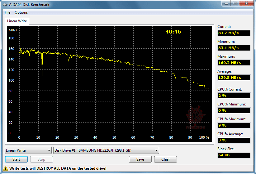 Samsung Spinpoint F4 HD322GJ [320GB] : Review : AIDA64 Disk Benchmark : Write (8/10)