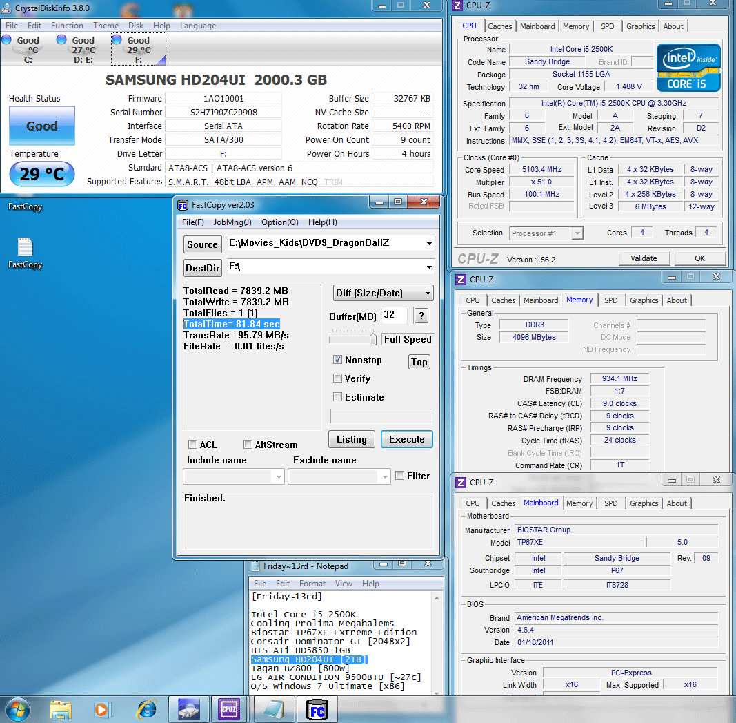 2 เทสนี้ เป็นเทสจาก AIDA64 Benchmark กับ FastCopy โดยลอง Copy ข้อมูลขนาด 7.8GB จำนวน 1 ไฟล์ จากฮาร์ดดิสก์ลูกอื่น มาเขียนลง Samsung HD204UI ใช้เวลาไป 81.xx วินาที