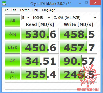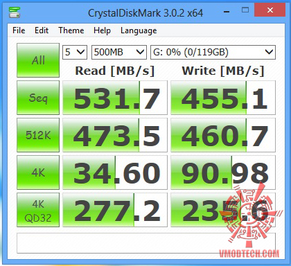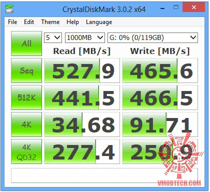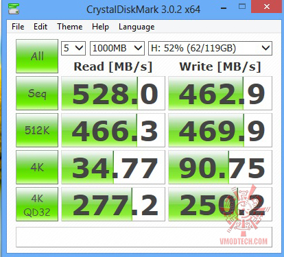 แม้จะใช้งานข้อมูลไปถึง 52% แต่ความแรงไม่ตกเลยครับ แรงจัดจริงๆ ผลเทสเฉลี่ยของโปรแกรม CrystalDiskMark ทั้งการทดสอบ 100MB-2000MBความเร็วเฉลี่ยการอ่านอยู่ที่ 520+MB/s ส่วนการเขียนอยู่ที่ 460+MB/s อ่านเขียนได้แรงมากครับ ส่วนค่า 4K ก็ยังแรงในระดับมาตรฐานของชิปเซ็ต AMD ครับ แรงจัดสมกับเป็น SSD ตัวแรงของยี่ห้อ SAMSUNG