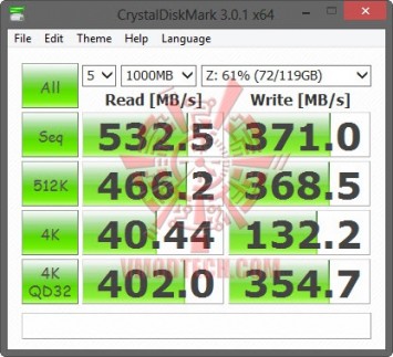 AS SSD Benchmark ยืนยันความแรงด้วยตัวเลขเท่าๆกับ CDM ครับ แต่ถ้าจะพิจารณาย้อนไปเทียบกับ Plextor นั้น เรื่องของ 4K อาจจะเป็นรองอยู่พอควร