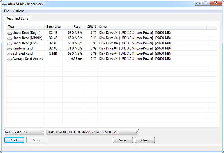 ผลเทสก็ออกมาพอๆกันกับ HDTune เลยครับ ประมาณ 68 MB/s