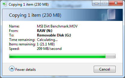 ผมลองทดสอบโยนไฟล์ขนาด 230 MB ข้ามมาจาก HDD มายัง Silicon-Power BLAZE B10 32 GB USB 3.0 เร็วมากครับกับไฟล์ไม่ใหญ่มากแบบนี้