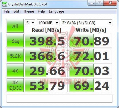 ก่อนจะจบไม่ลืมครับที่จะนำผลเทสหลังจากที่ตัว SSD ตัวนี้มีข้อมูลอยู่ประมาณหกสิบเปอร์เซนต์มาเปรียบเทียบให้ชมกันครับว่าความสามารถในการอ่านเขียนจะลดลงหรือเปล่า
