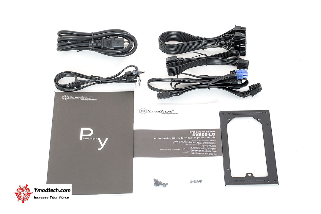 ภายในกล่องก็มี  สายไฟต่างๆ, คู่มือต่างๆ, สกรู 8 ตัว และ bracket แปลงเมาท์ จาก SFX ไป ATX สำหรับใช้กับ ATX case ครับ
