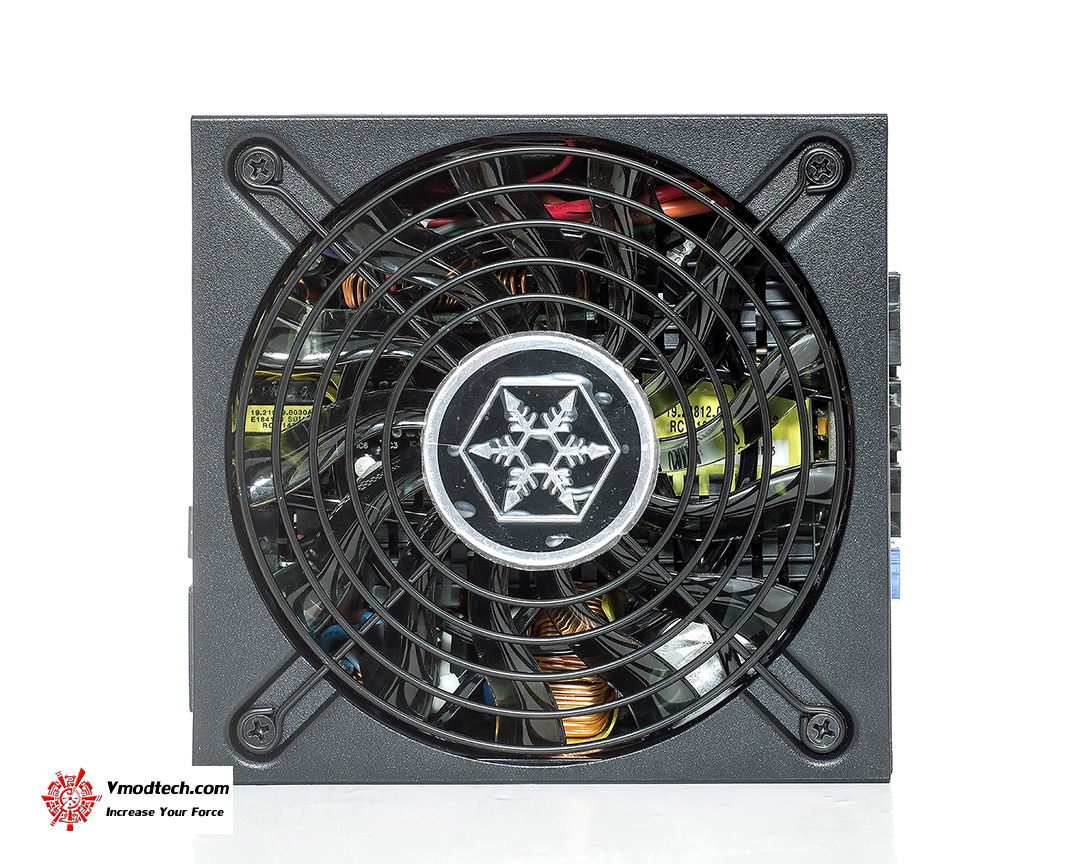 ด้านล่างก็เป็นส่วนของพัดลม 120mm. ดูดลมเย็นเข้าระบบ พัดลมจะทำงานเมื่อตัว PSU มีอุณหภูมิเกิน 40 องศาครับ แบบนี้เงียบแน่นอน