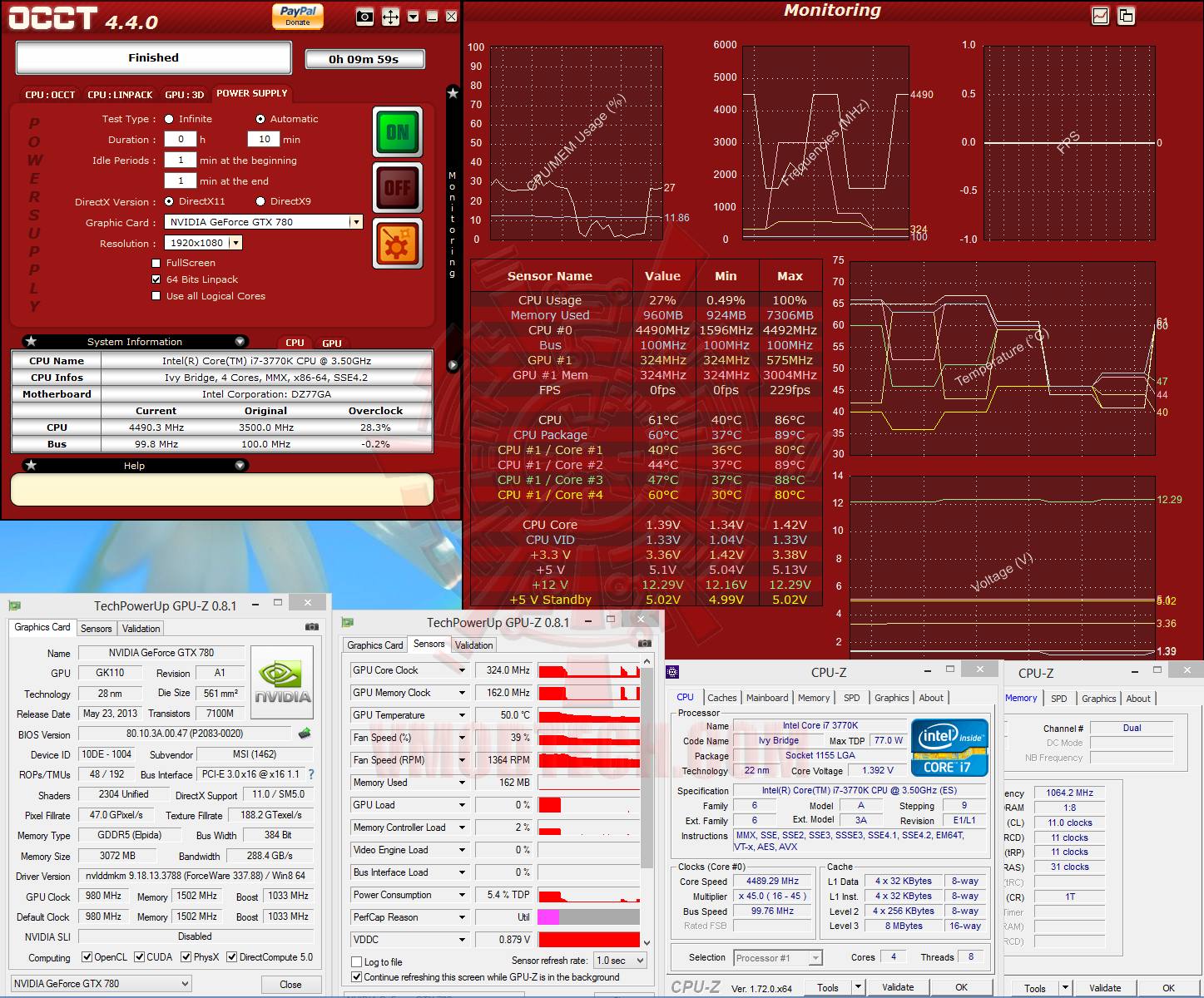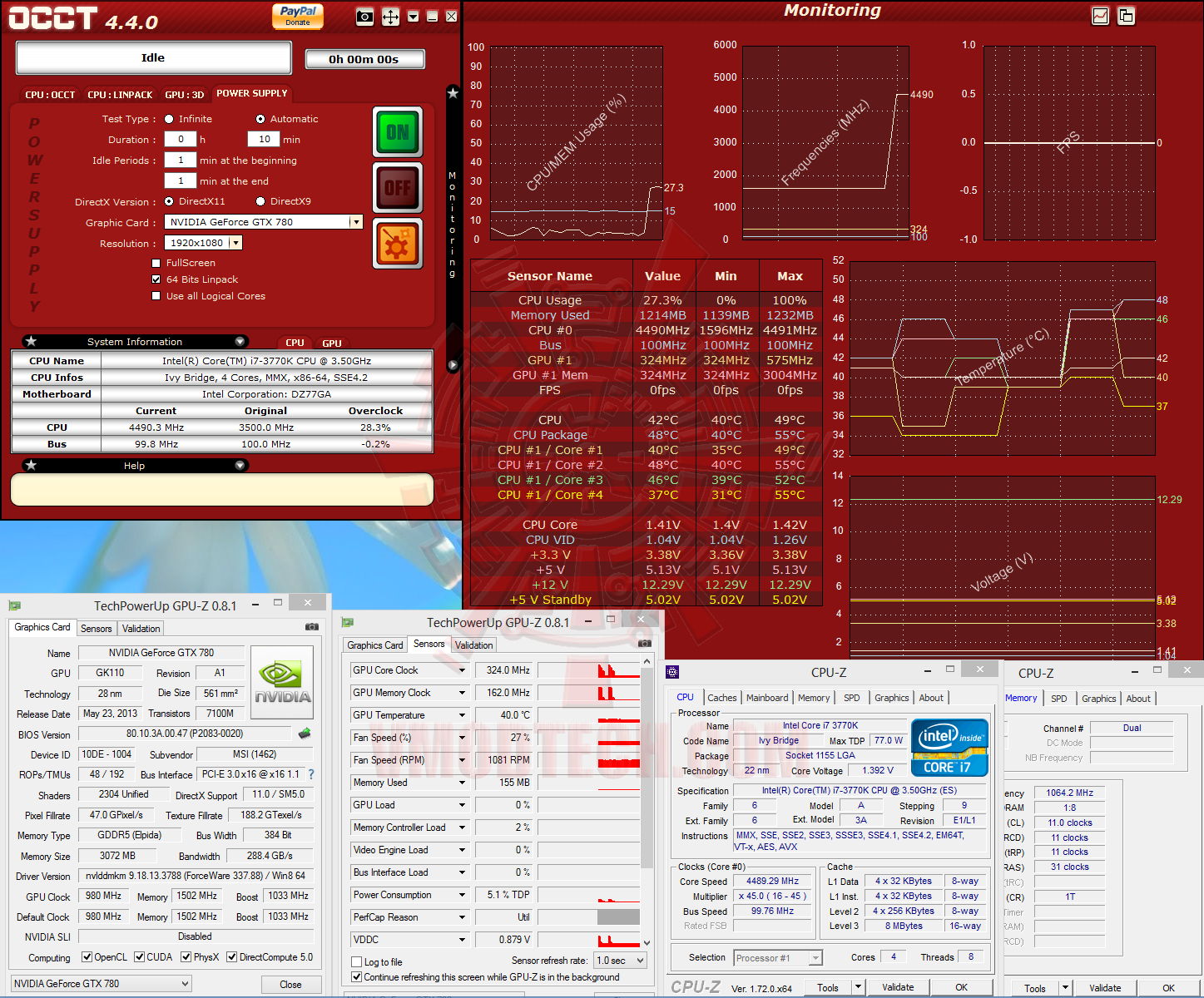 วันนี้จะ ใช้ CPU I7 3770K ครับ Overclock ไปที่ 4.5 GHz ใช้ไฟเลี้ยงเกินขนาดไปที่ 1.4 V ครับ ต่อกราฟิกการ์ด MSI Geforce GTX780 Lightning